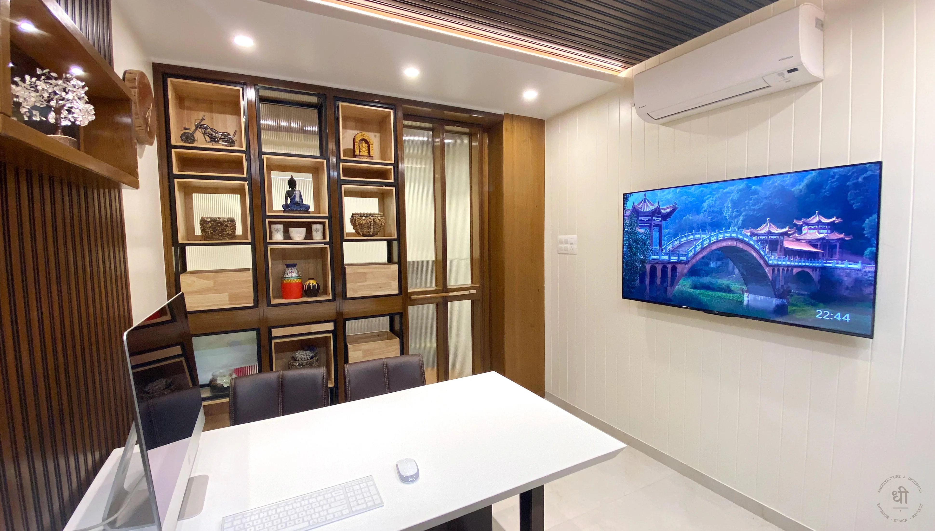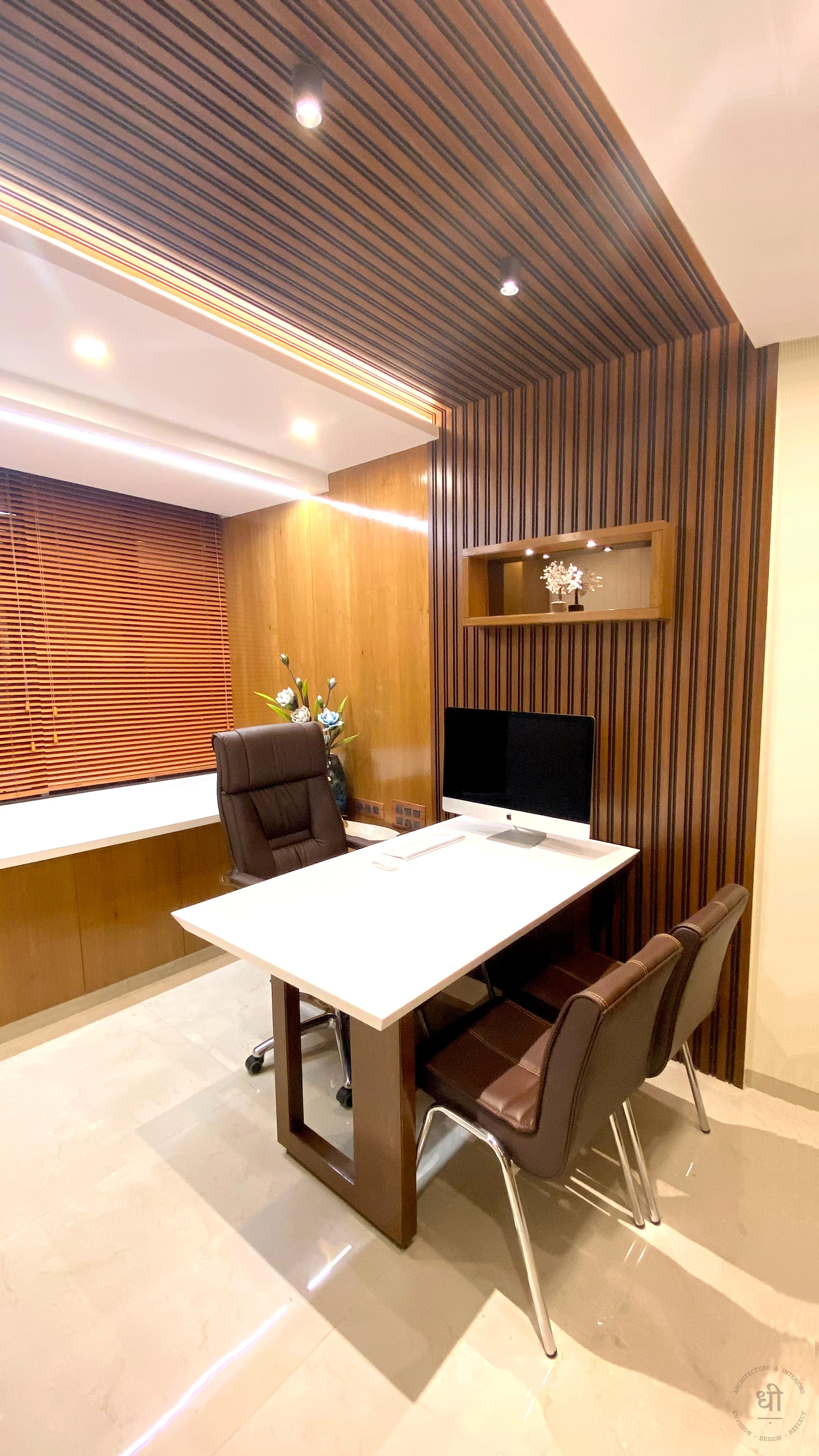 The secretary’s cabin, designed with a more structured and enclosed layout, strikes a purposeful