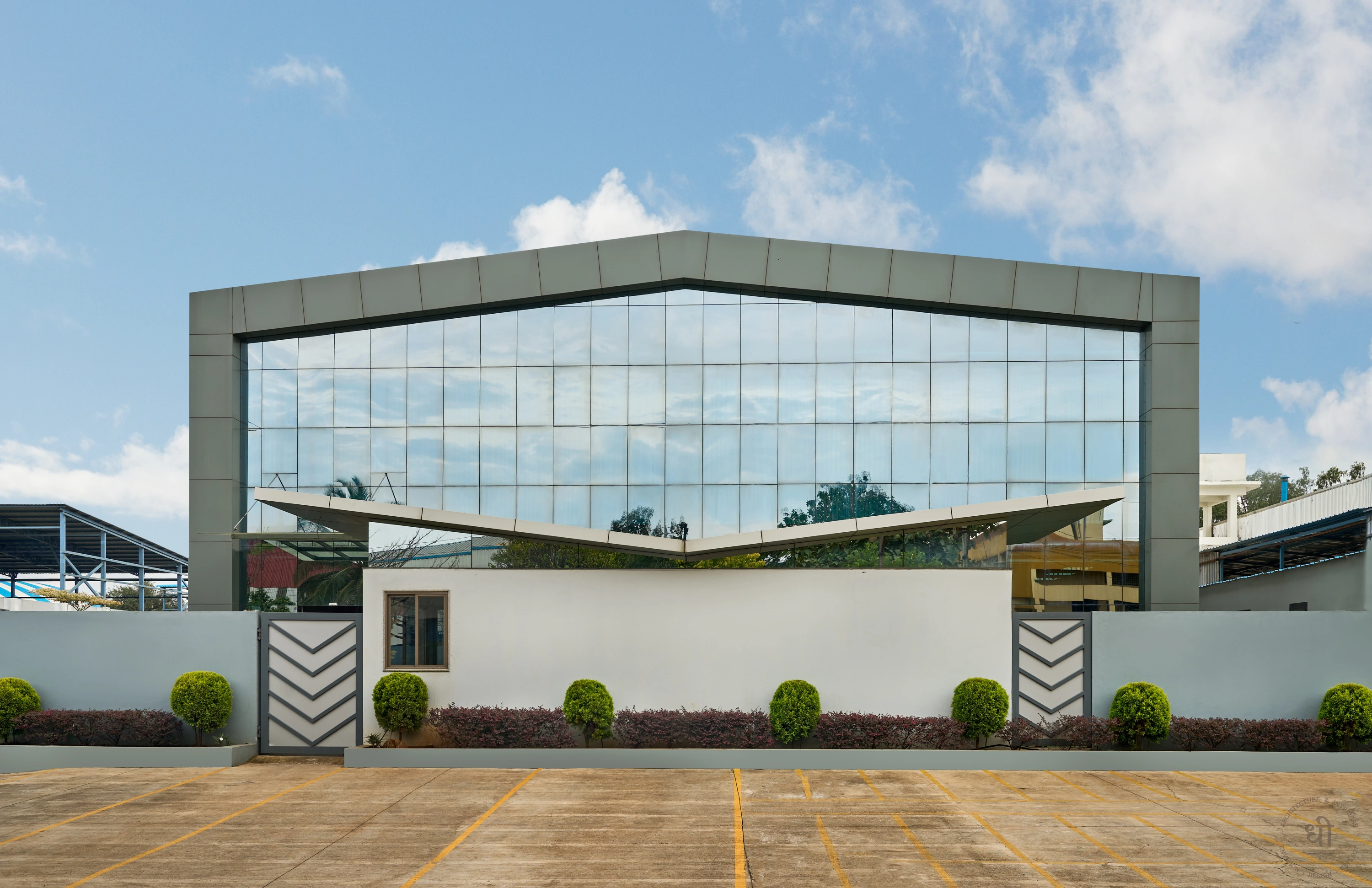 The architectural concept draws inspiration from the iconic silhouette of an aeroplane hangar,